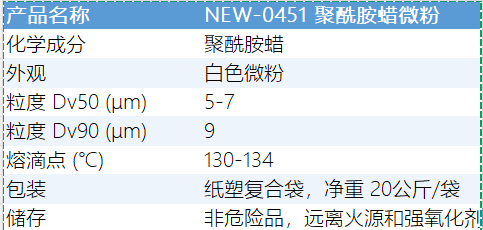 NEW-0451聚酰胺蜡经过特殊的表面改性处理,与环氧树脂、固化剂体系具有良好的相容性,能够快速润湿分散,活化充分。